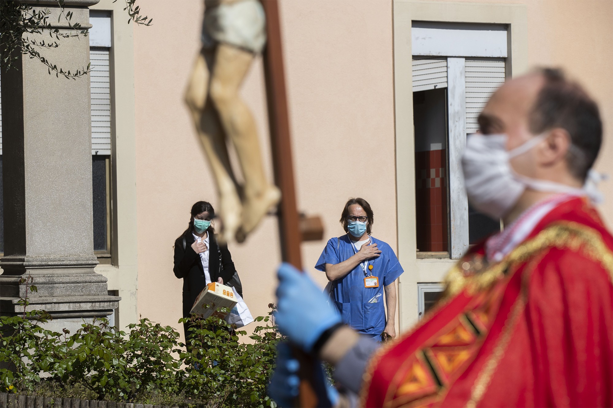 Medidas de quarentena para evitar aglomerações impuseram desafios para fiéis, com procissões canceladas e cerimônia via web ou até em drive-in. Profissionais de saúde acompanham com as mãos no peito a passagem de um padre levando um crucifixo na Via Crucis antes da missa de Sexta-Feira Santa no Ospedale di Circolo, hospital de Varese, na Itália Luca Bruno/AP Homem reza diante da capela Los Marineros, em meio a flores deixadas por fiéis após ser cancelada a tradicional procissão de La Esperanza de Triana, que ocorre toda Sexta-Feira Santa em Sevilha, na região da Andaluzia, na Espanha Marcelo del Pozo/Reuters Pela primeira vez na história, Basílica de Aparecida celebra Sexta-feira Santa sem a presença de fiéis, na cidade de Aparecida (SP) André Bias/TV Vanguarda Fiéis participam de cerimônia da Sexta-Feira Santa de dentro de seus carros no estacionamento de um cinema drive-in em Dusseldorf, na Alemanha Martin Meissner/AP O Papa Francisco reza deitado no chão antes do início da missa da Paixão de Cristo na Basílica de São Pedro, no Vaticano Andrew Medichini/pool via AP Mulher reza ajoelhada diante do portão da Igreja de São Patrício em Melbourne, na Austrália, com o templo fechado para o público na Sexta-Feira Santa devido à pandemia William West/AFP Usando máscaras, penitentes se flagelam diante de uma igreja fechada na Sexta-Feira Santa em Manila, nas Filipinas, desafiando ordem do governo para não sair de casa devido à pandemia de coronavírus Eloisa Lopez/Reuters Um penitente usa luvas e máscara enquanto bate tambor da porta de casa em Cuenca, na Espanha, após ser cancelada a procissão do Caminho do Calvário, também conhecida como Turbas, devido à pandemia Susana Vera/Reuters Peregrino vestido como Jesus é visto diante da porta fechada do Santo Sepulcro na Cidade Antiga de Jerusalém, Israel, na Sexta-Feira Santa durante a pandemia do coronavírus. Todos os pontos que atraem fiéis de diferentes crenças na chamada Terra Santa foram fechados pelo governo para tentar conter a doença Emmanuel Dunand/AFP Homem carrega uma cruz enquanto caminha sozinho pela Via Dolorosa em Jerusalém, Israel, na Sexta-Feira Santa Ammar Awad/Reuters Foto dos olhos da Virgem de Esperança de Triana foi deixada ao lado de uma vela diante da capela Los Marineros, em Sevilha, após o cancelamento da procissão de La Esperanza de Triana Marcelo del Pozo/Reuters Padre adentra uma igreja vazia para celebrar missa da Sexta-Feira da Paixão em Gauhati, na Índia. Fiéis estão celebrando a data de suas casas devido à pandemia do coronavírus Anupam Nath/AP Padre celebra missa da Semana Santa diante de fotos dos fiéis da Igreja de Nossa Senhora da Paz em Villar del Azobispo, vila perto de Valência, na Espanha Nacho Doce/Reuters Pequena procissão de Sexta-Feira da Paixão percorre ruas de Sabará (MG), na região metropolitana de Belo Horizonte Reprodução/TV Globo Padre usa máscara e luvas para celebrar missa da Sexta-Feira Santa no Ospedale di Circolo, hospital que fica em Varese, na Itália Luca Bruno/AP